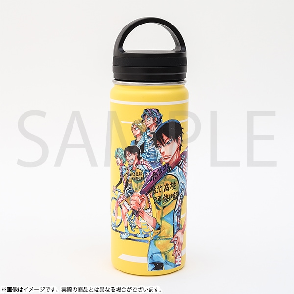 【サイズ】高さ約25cm 内容量:540ml 【仕様】本体:ステンレス パッキン:シリコーン 蓋:PP ※電子レンジ・オーブン・冷凍庫不可、食器洗い乾燥機不可 総北高校メンバーのイラストがデザインされたステンレスボトルです。 持ち手付きで運びやすく普段使いにも便利! ※おひとり様5個までの販売とさせて頂きます。